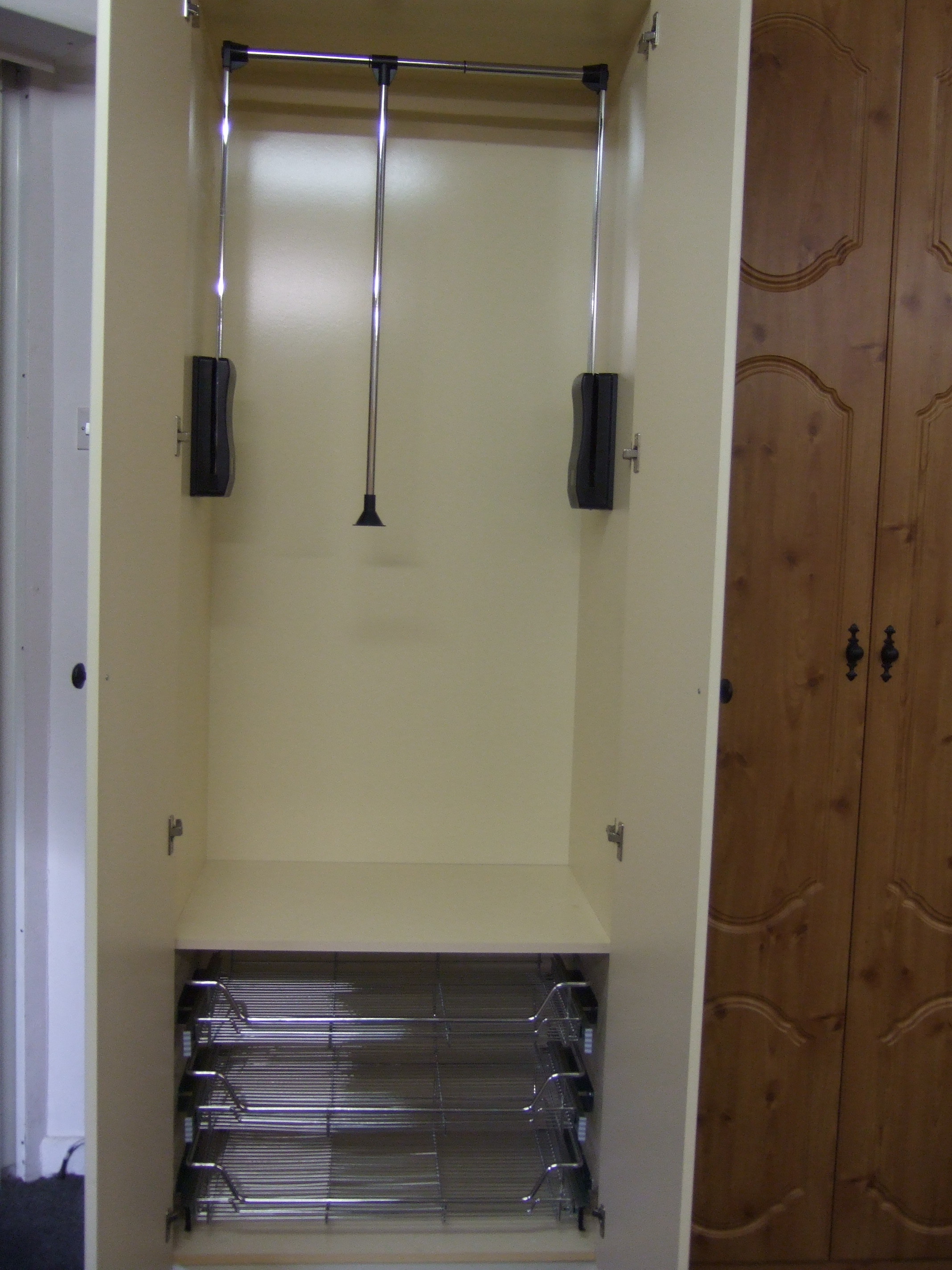 Whether it is a sliding wardrobe or standard fitted bedroom design wardrobe, we have a range to suit your needs. We cater for Dormer houses with shaped ceilings and we provide a wide range of storage solutions such as chrome pull out baskets and wardrobe pull down rails.